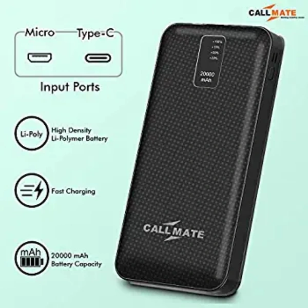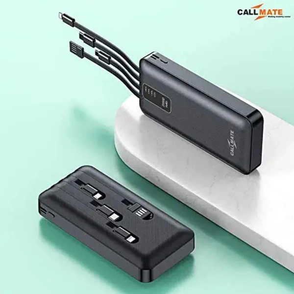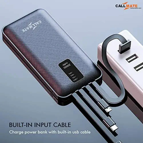 CALLMATE Portable Charger, 20000 mAH Li-Polymer Digital Display Power Bank with inbuilt 4 in 1 Cable USB Input Port