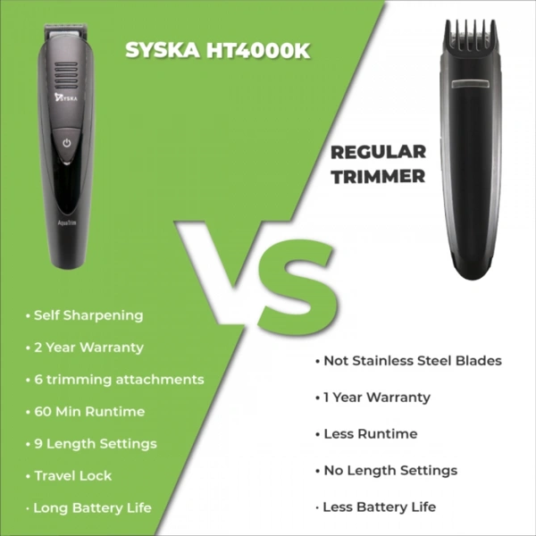 Syska Aqua Trim Pro Styling Kit HT4000K Runtime: 60 min Grooming Kit for Men