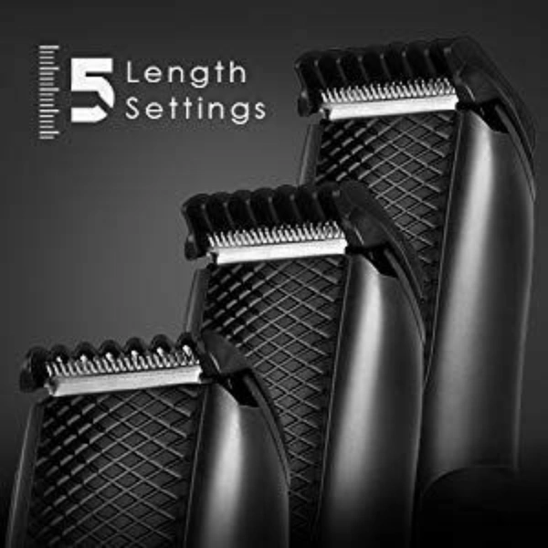 The Syska HT200U comes with Self-sharpening Stainless Steel Blades; Upto 40 Minute Run Time; Trimming Range of 0.5 - 7 mm and 5 Length Settings